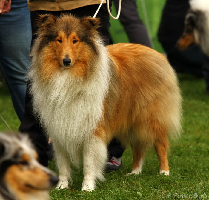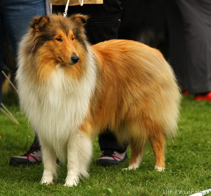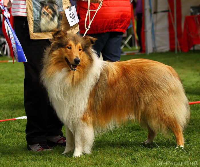 Richterbericht: 11 Mon., 2 Hoden, sehr gute Kopfproportionen, dkl. ausdrucksvolle Augen, etw. breit angesetzte Ohren, gut geschwungener Hals, sehr schöne Oberlinie, korr. Winkelungen, ausgreifendes Gangwerk, freundliches Verhalten. |