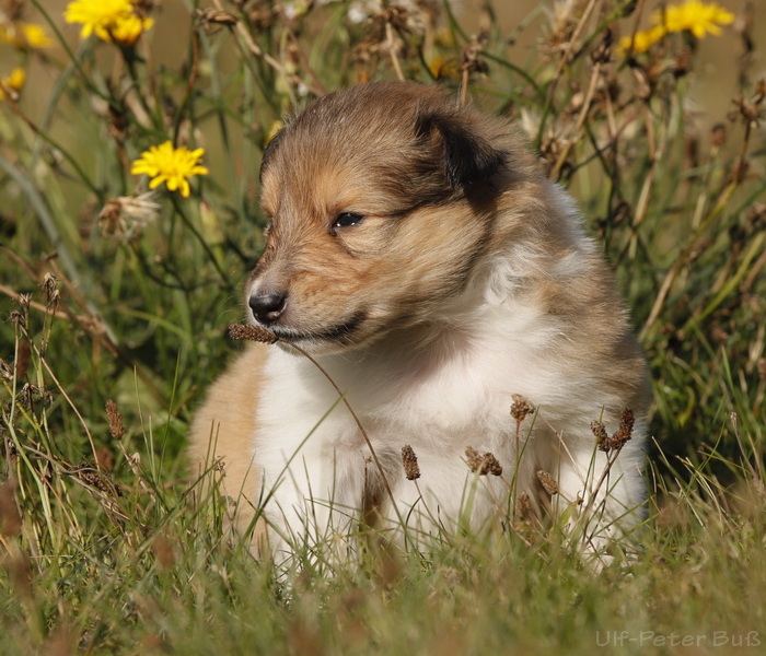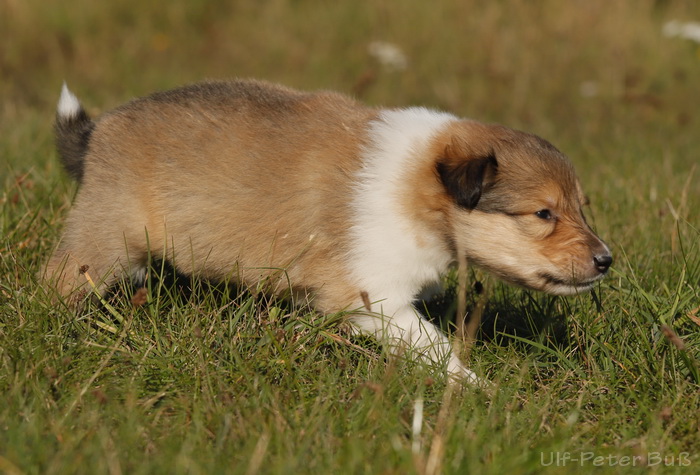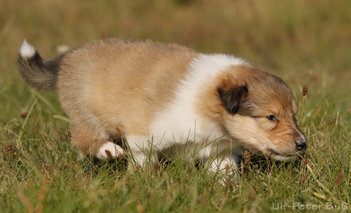 spielen mit Sheltie Frieda (4 Monate)